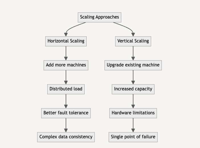 In the world of system design, scaling is a crucial concept that determines how well an application can handle growth and increased load. There are two primary approaches to scaling: Horizontal Scaling and Vertical Scaling. This page will explore both concepts, their advantages, disadvantages, and provide examples to illustrate their implementation I have executed in differen system designs.